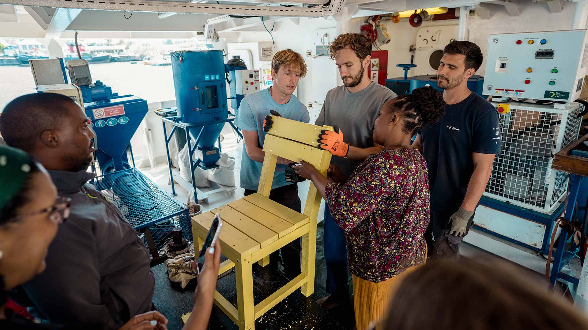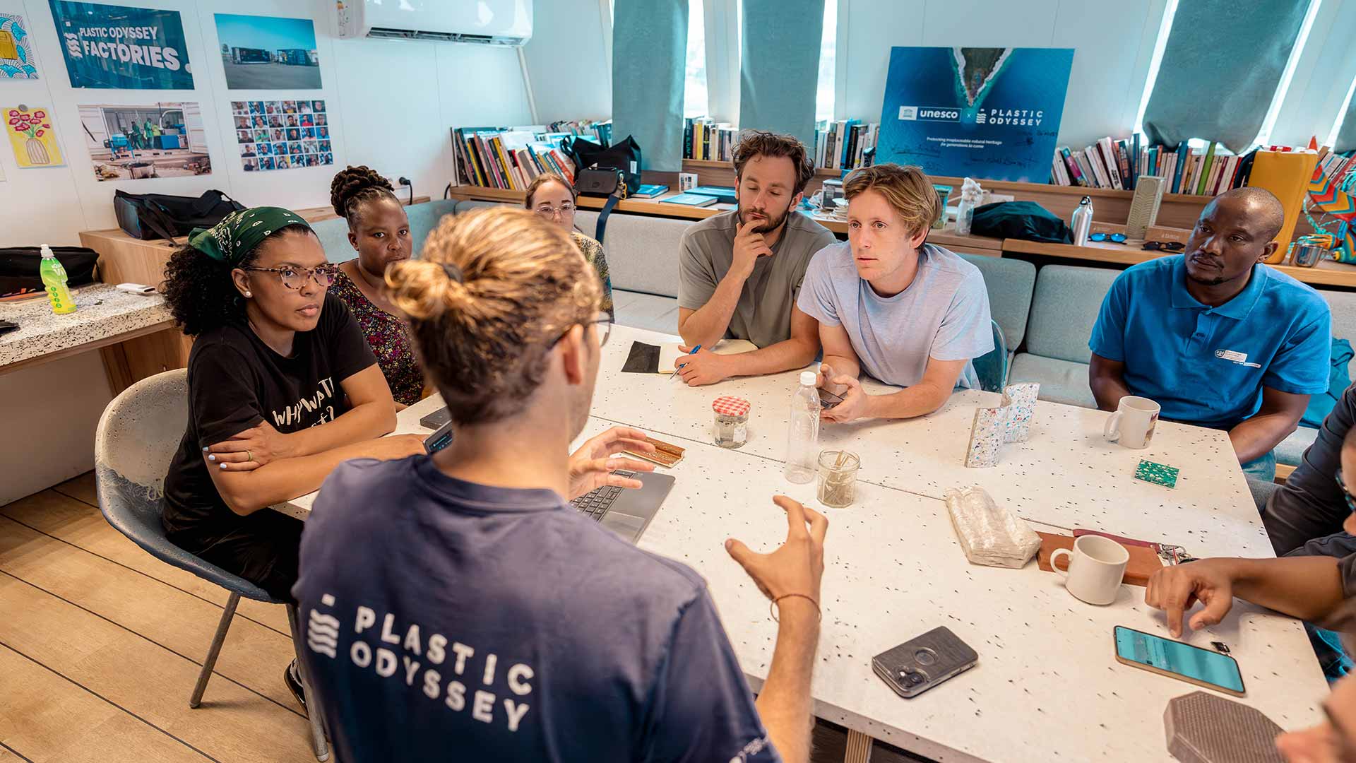 C’est dans ce contexte qu’un OnBoard Laboratory s’est tenu du lundi 15 au mercredi 17 décembre, à bord de Plastic Odyssey, amarré à Cape Town. Une dizaine de participants, entrepreneurs, universitaires, industriels, salariés du secteur et chercheurs s’y sont retrouvés pour échanger autour des solutions développées par le navire et ses équipes, nourries par plus de trois années de terrain dans les pays du Sud.